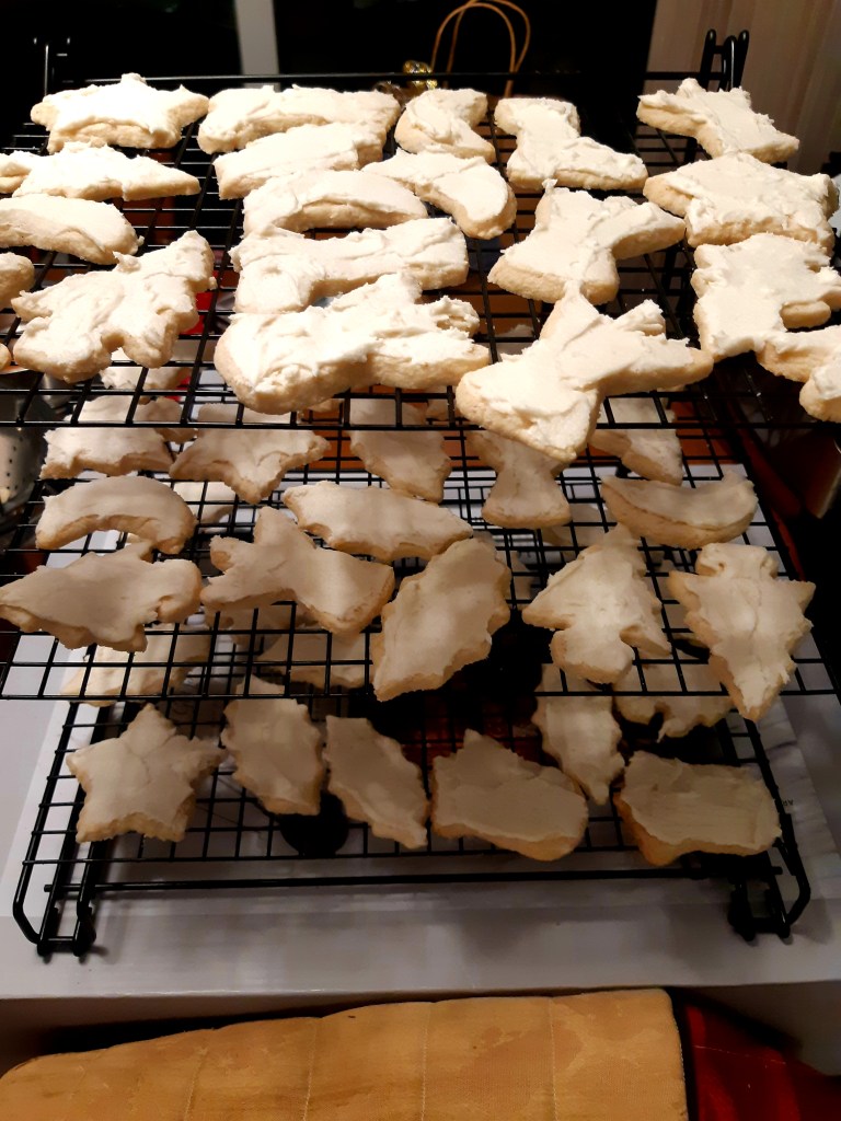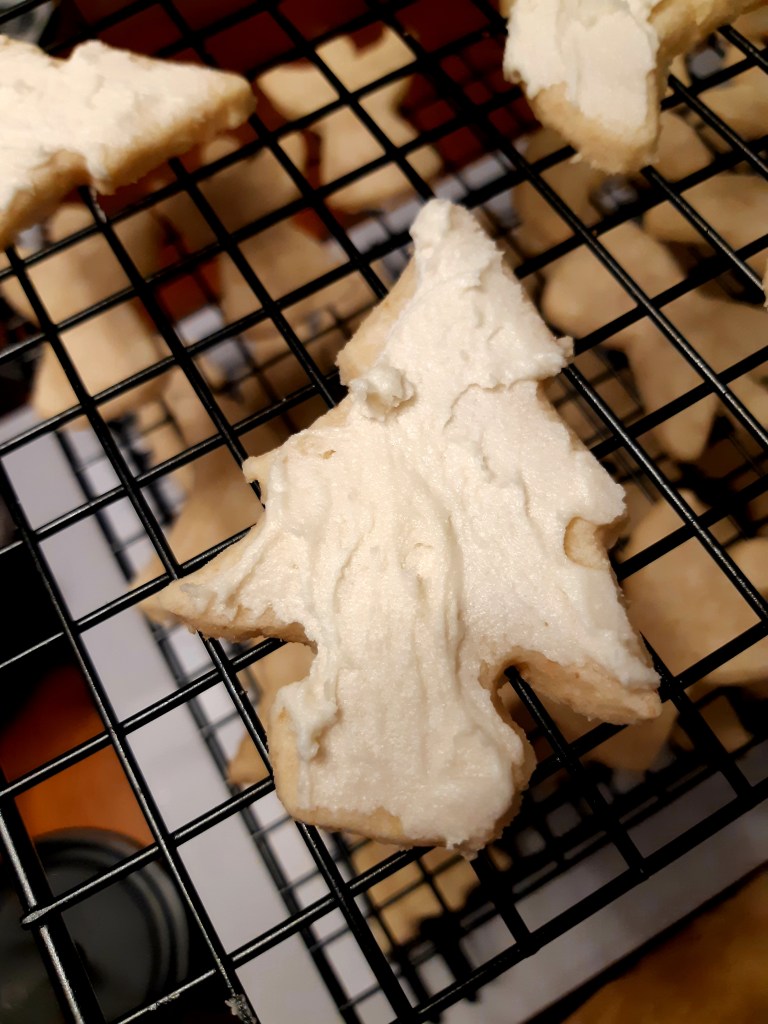 Somehow, even though we had no company or travel, we were more busy than ever coming up to Christmas this year. This might have to do with a newborn in the house… This meant I didn’t get to Christmas baking before Christmas day. Instead, V and I made cookies on Boxing day, by that I mean I made the cookies, she helped pour some ingredients into the bowl and she selected the cookie cutters. Strangely our toddler didn’t want to cut the cookies out herself.