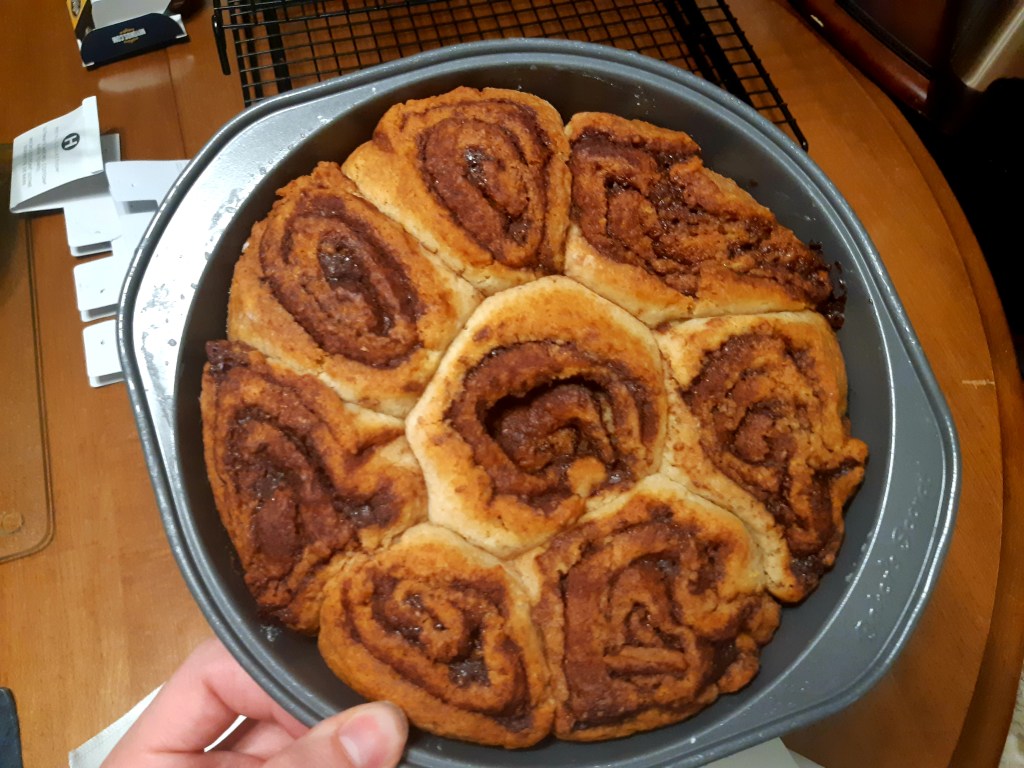 (10) Night before preparation: Once the rolls are in the pie plate, cover with plastic wrap and place in the fridge. In the morning set out at least 25 minutes before baking.