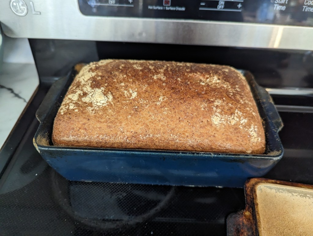 • If it is browning too quickly, cover with some foil around 35 minutes. Turn the oven down to 400F for the final 15 minutes. Test the temperature of your bread (should be 208-212F) to be cooked properly.