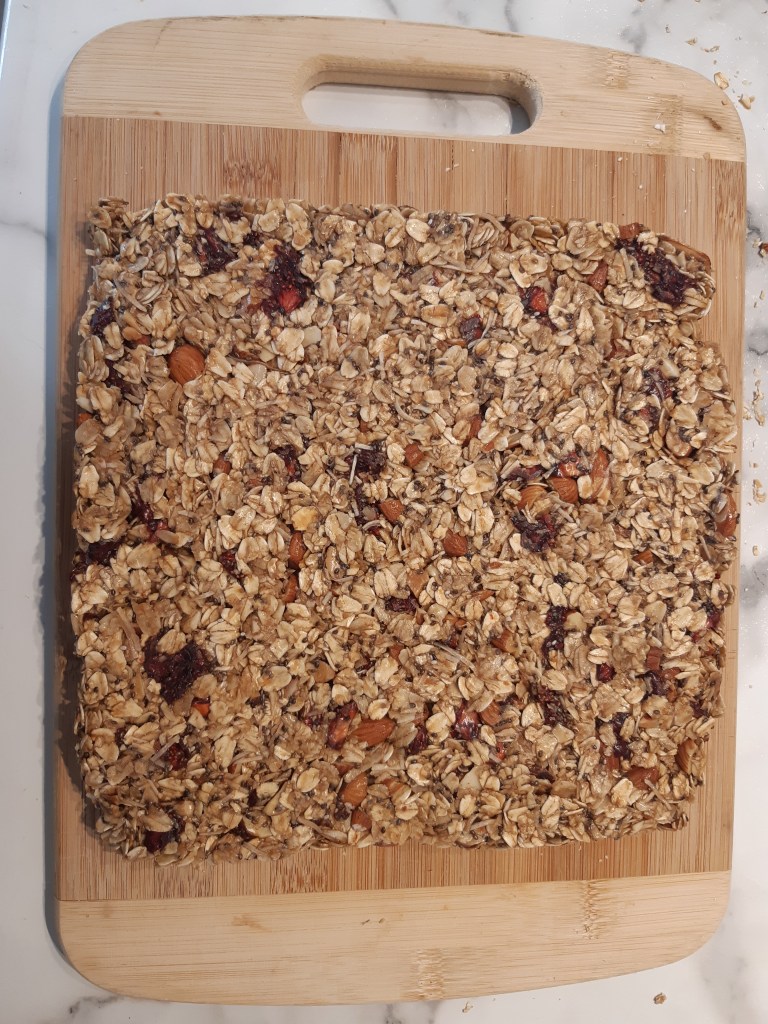 What the mix should look like when pressing into panCooled at least 2 hours in the fridge (this was overnight)What they look like sliced and ready to eat